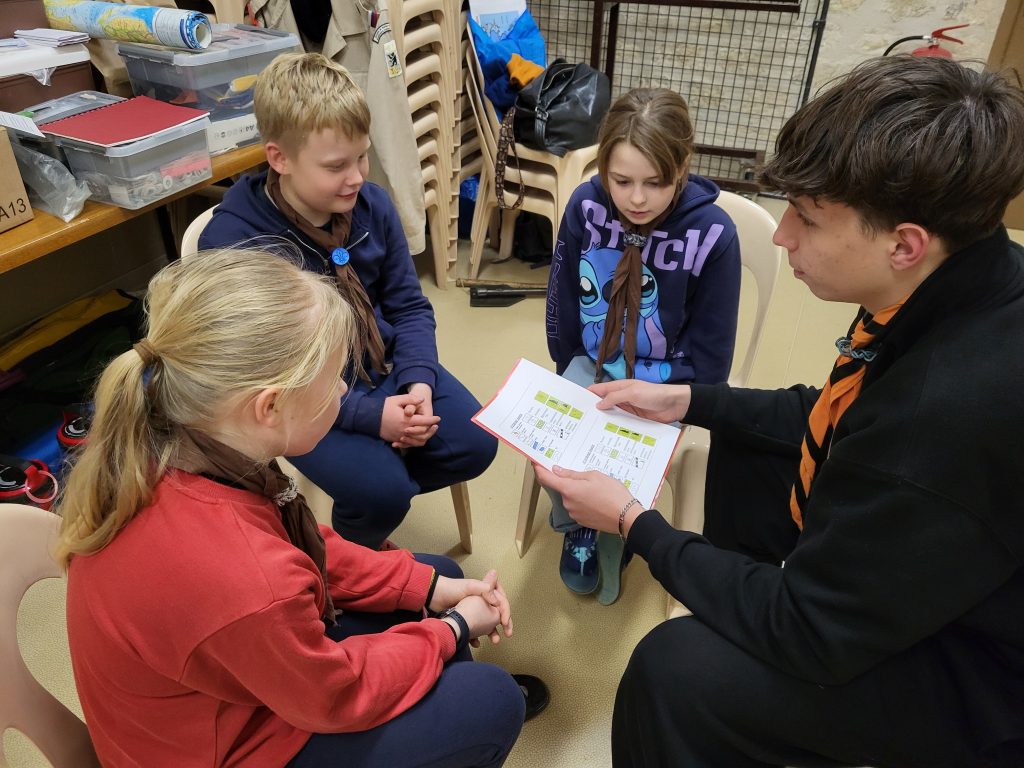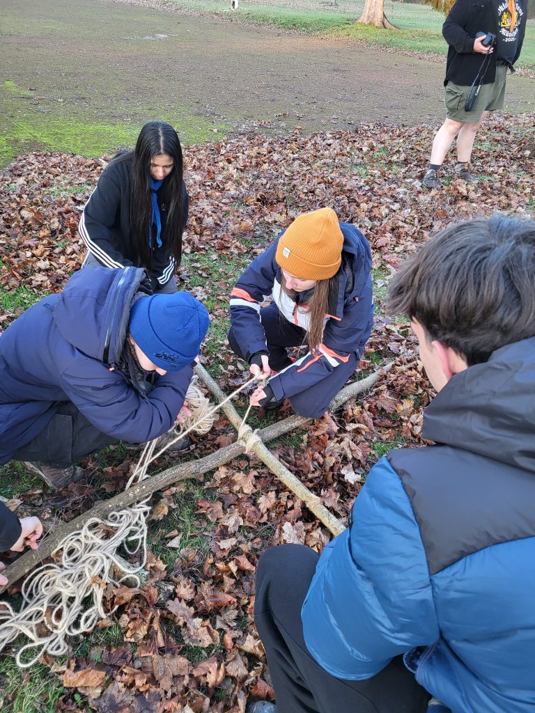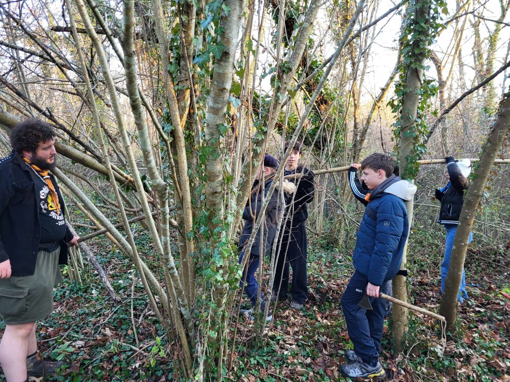 Параллельно отряду стая проводила свою программу. Следуя по трассе из лесных дорожных знаков, оставленных Лисом, стая дошла до бункера, которых немало в округе, и осмотрела его. Затем стая провела «лыжную эстафету». В этой игре вся команда должна была стать одним лыжником, которому надо бежать по трассе то в гору, то с горы, то по равнине. Члены команды должны были двигаться синхронно, преодолевая этапы эстафеты. Получилось больше весело, нежели синхронно! После обеда кандидаты на 1 и 2 глазки изучили узлы с Таволгой и прослушали рассказ о Рождестве. Кандидаты же в «таёжные» вместе с Вомбатом учились азам зарисовки местности. Такой получился насыщенный учебный день!