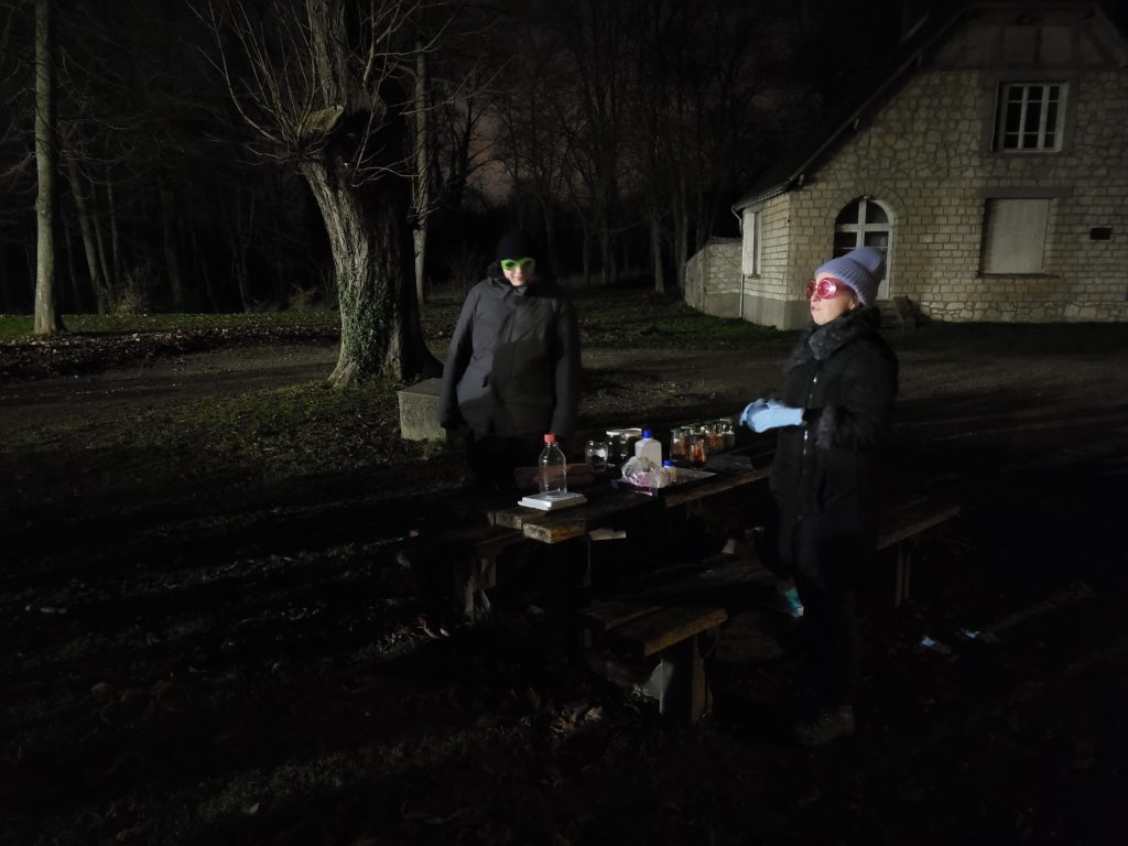 С наступлением темноты и с помощью Осины на улице провели эксперимент-демонстрацию «Северное сияние» в термостойкой посуде.
