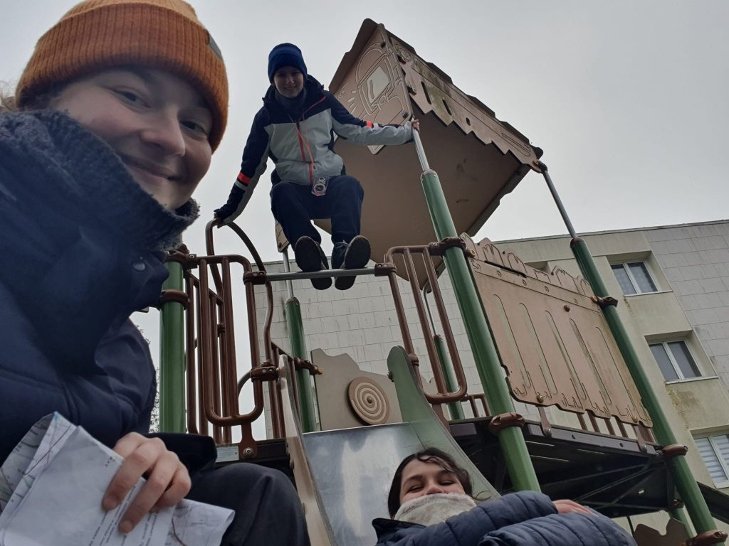 Пообедав, все поиграли в интересную игру Дятла «Помогаем Незнайке найти путь на север»: четыре команды соревновались на четырёх пунктах, на которых надо было выполнить разные задачи, чтобы получить зашифрованное сообщение.
